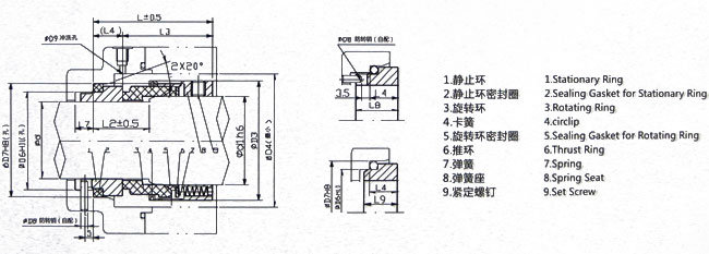 用途:用于化工、石油化工、煉油、制冷、制藥、造紙、給排水、污水處理等工業(yè)泵類、反應(yīng)釜、壓縮機等設(shè)備的旋轉(zhuǎn)軸密封,介質(zhì)為水、油、有機溶劑及其它弱腐蝕性液體。